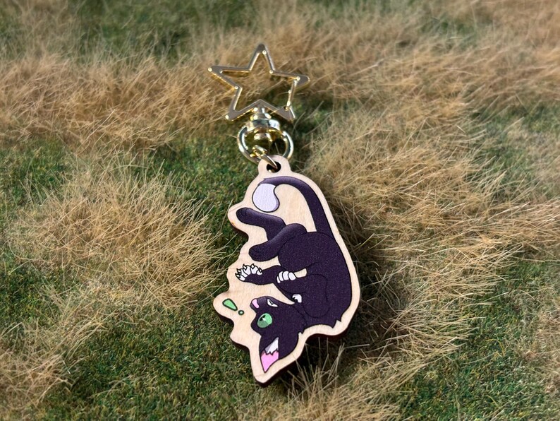 Each keychain is roughly 2 inches tall, made of wood, and all of them have a little star clasp.