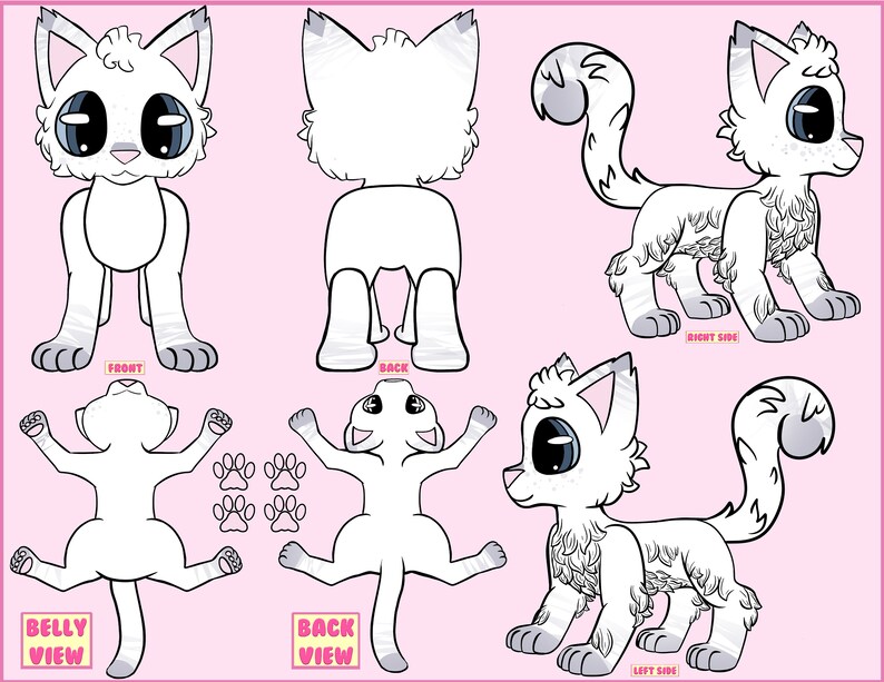 The custom will be made to look like the pelt design in the listing images, and you can decide what pose you want your custom to be in - Standing, Sitting, Laying, or Loaf (this pose is only available for Full Sized customs)