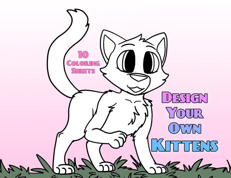 This Coloring Book includes 10 different poses to color to bring to life your favorite original character kittens, with poses such as: