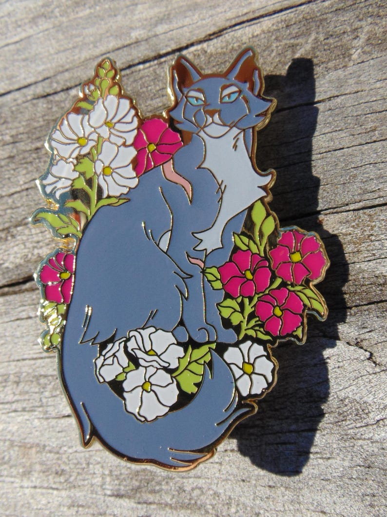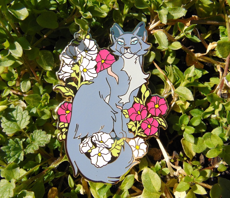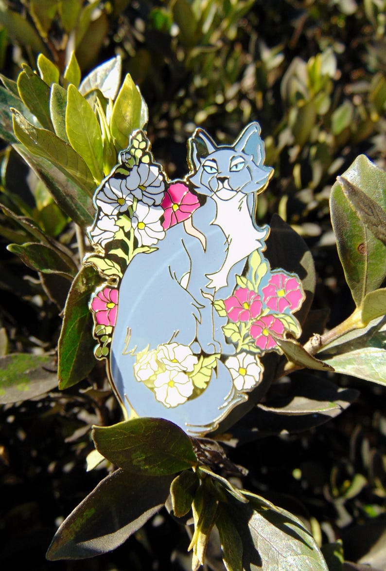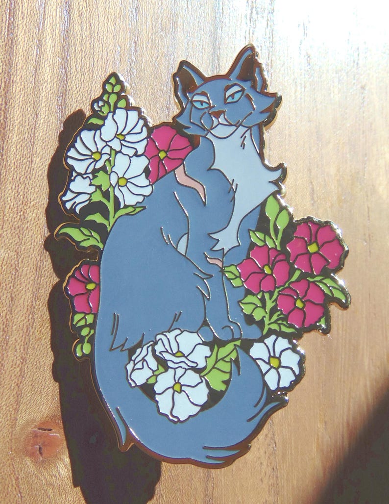 Bluestar 2.0, originally from the second set of my Garden of Warriors pins! Her flower is hollyhock, symbolizing ambition! This hard enamel pin is a large 58mm (2.3") tall, and gold plated with rubber clasps!