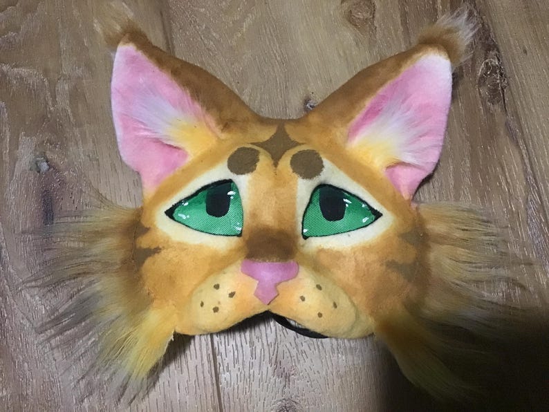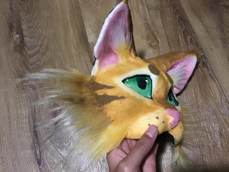 This is a therian mask inspired by the character Firestar/Fireheart! All character design credits to the authors of Warriors. I tried to make this as accurate to the book as I could. It is a high quality mask that is completely handmade by me. The ears are made with EVA foam. This mask is not waterproof, so avoid having water near or on it. If you have any questions, feel free to message me!