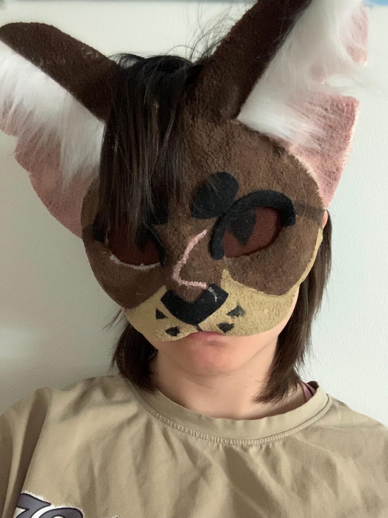 This mask is handmade for kids 8 & up. This mask is made with fleece and faux fur. Perfect for costumes. It is fully lined with eye mesh. The vision is okay and there is a hq elastic band.