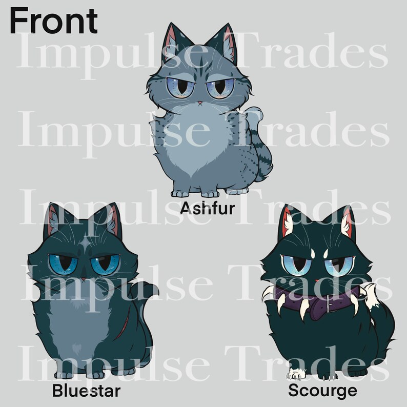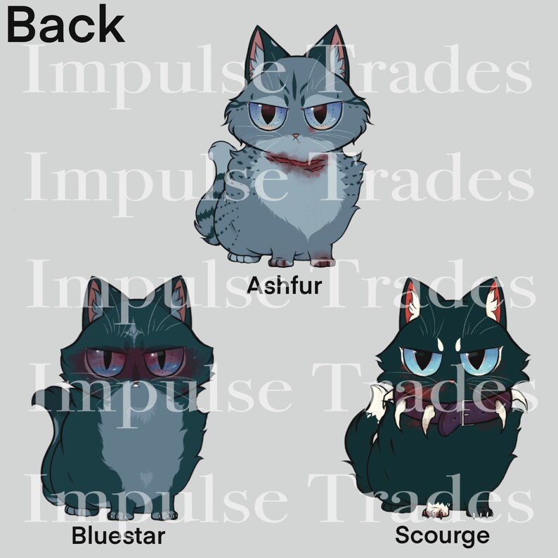 For my fellow Warrior Cats fans! Take one of this tiny hostiles with you to sit on your desk and stare you down to help you work! Each one is the same size and comes with a different backing of how they each died (Bluestar somewhat)