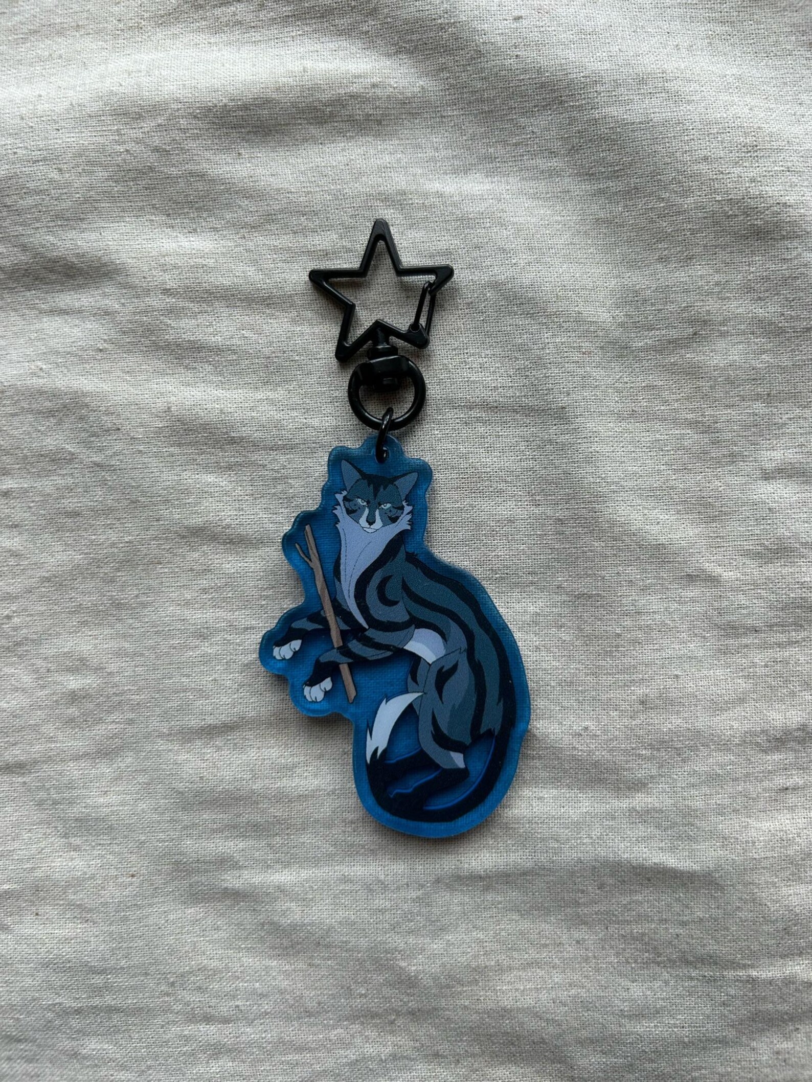 6.5cm keychains of the po3 characters on coloured acrylic