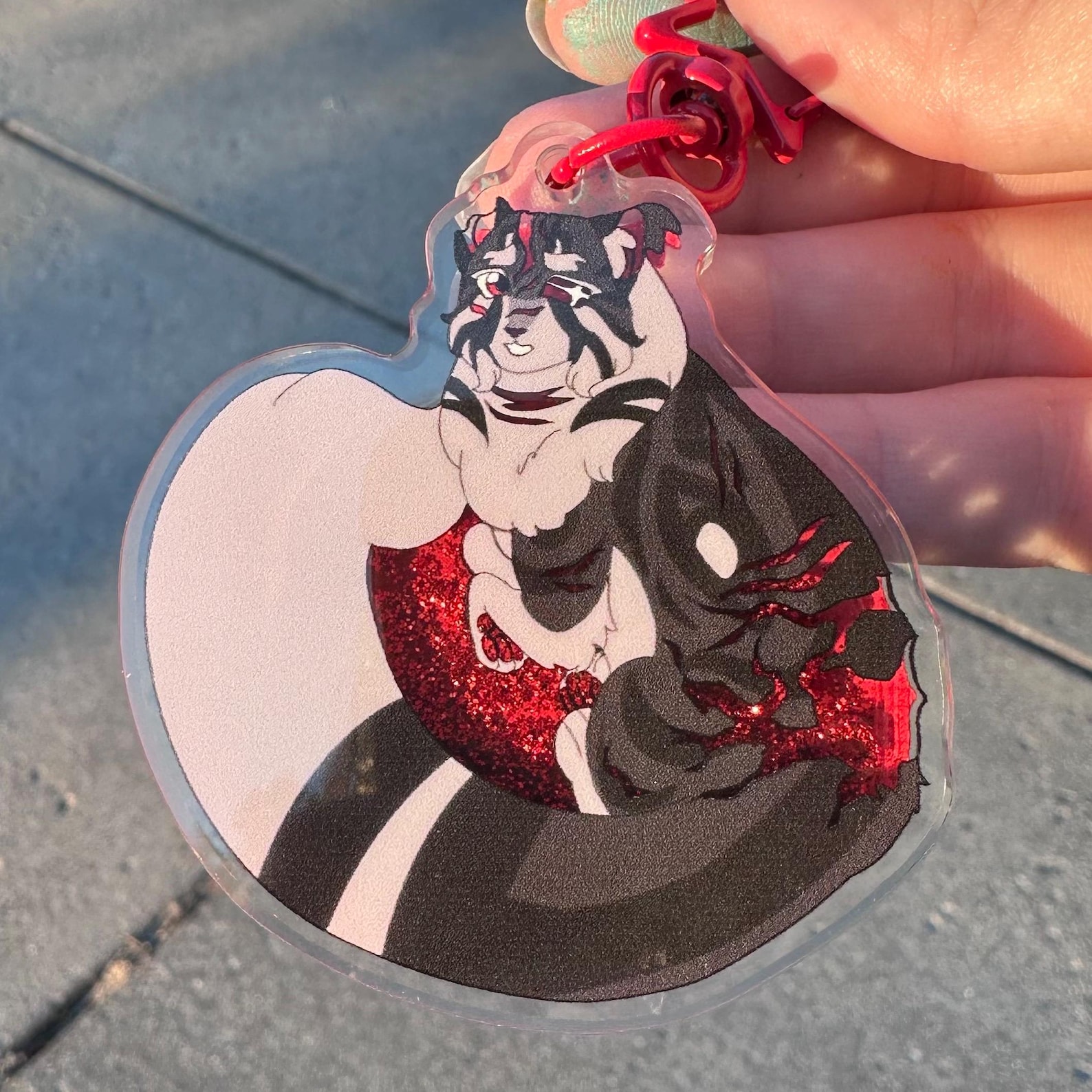 -Inner-keychain contains red glitter that shifts!