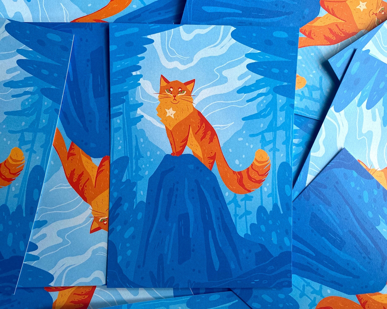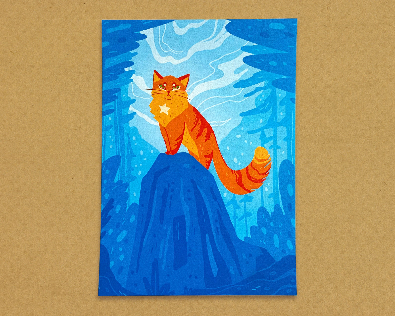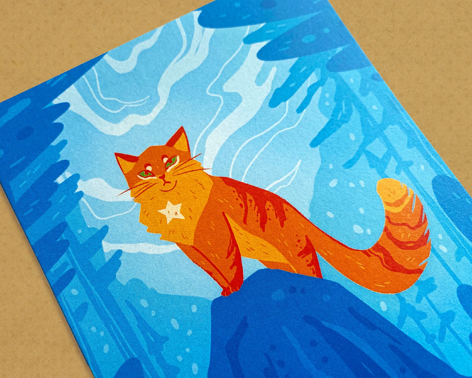 Printed matte on heavy cardstock, 5x7 inches, full bleed. Ships flat in a board-backed envelope.