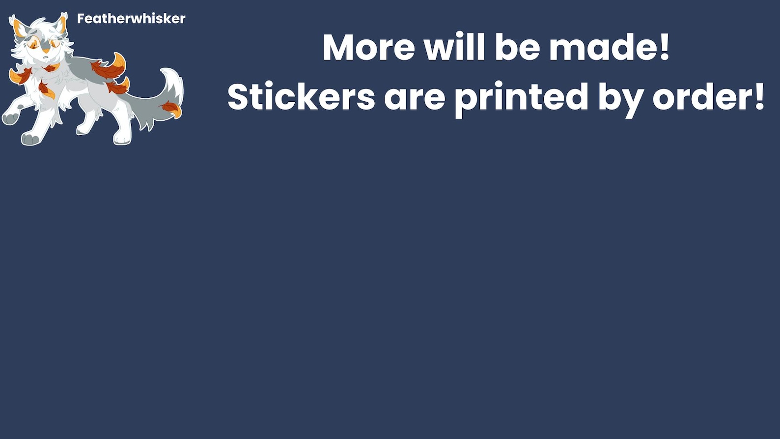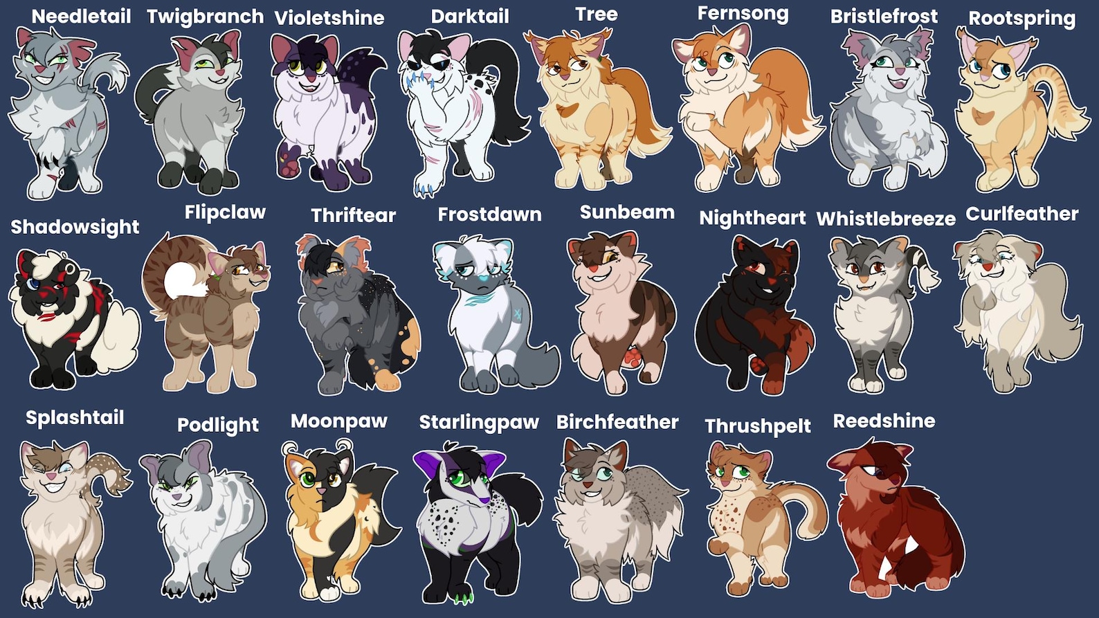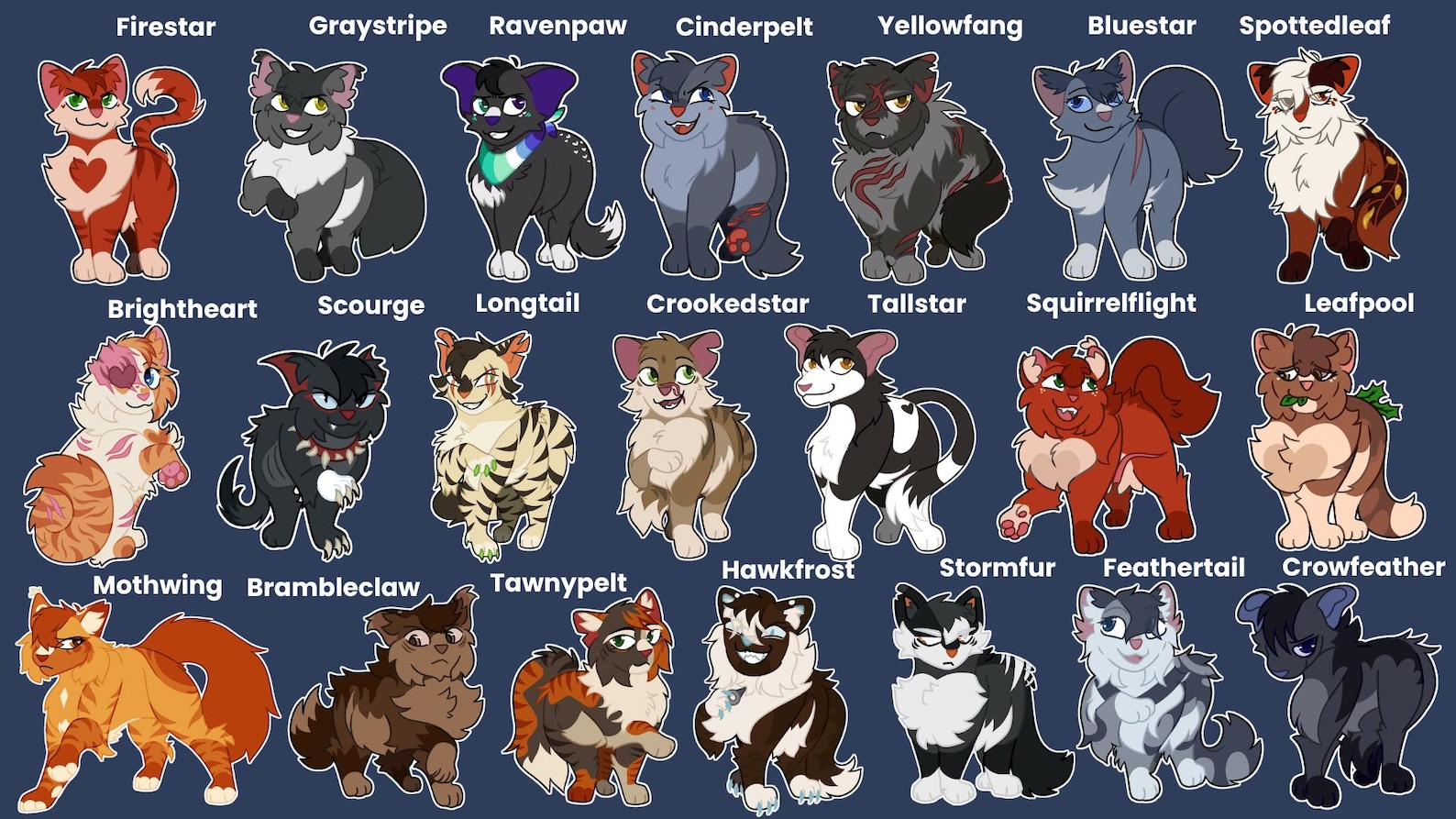 Tiny 1.5" glossy stickers of all your favorite cats in the clans! Will be sent with a regular envelope without tracking. If you do not specify which cats you want, I will choose for you!