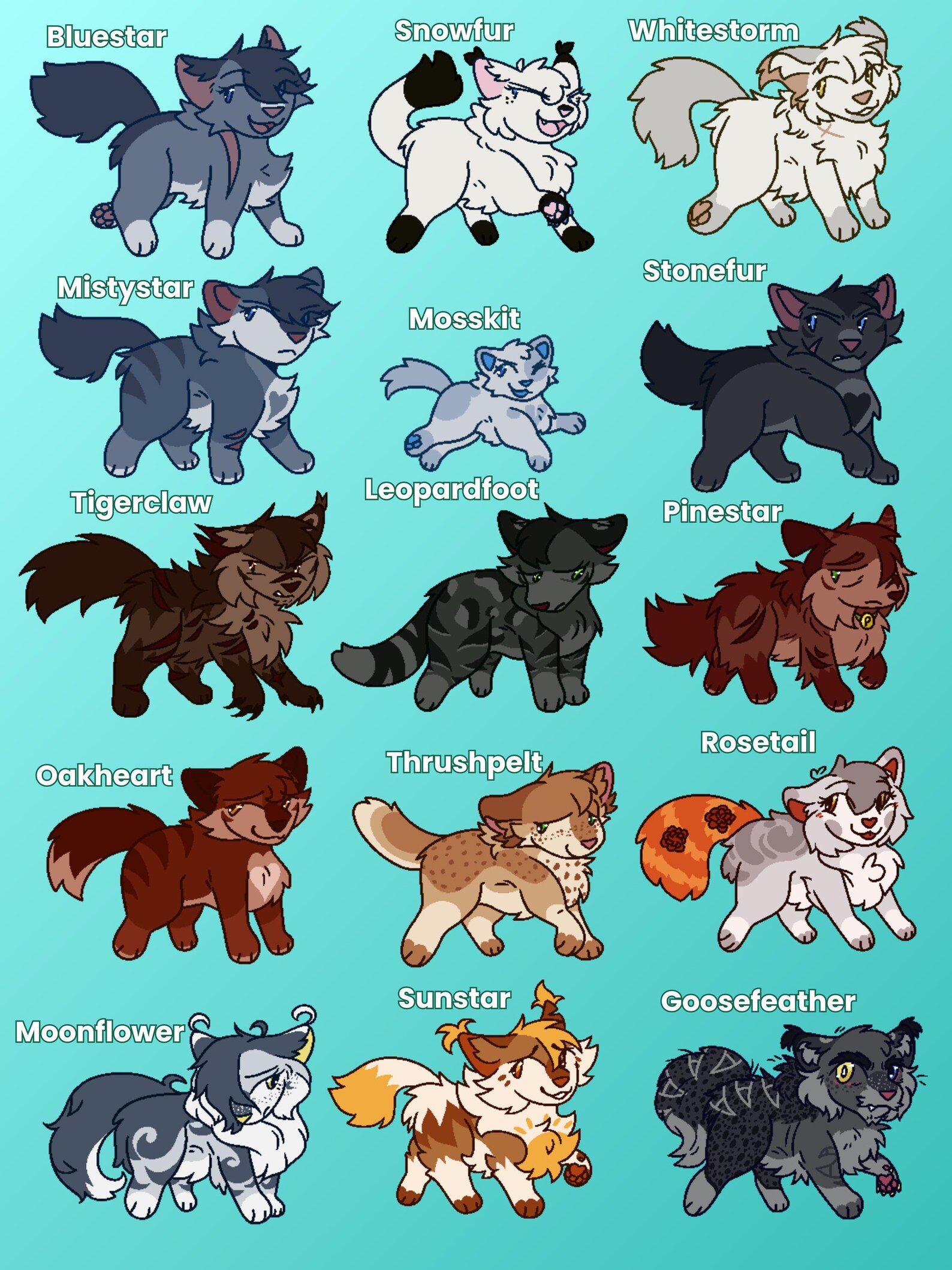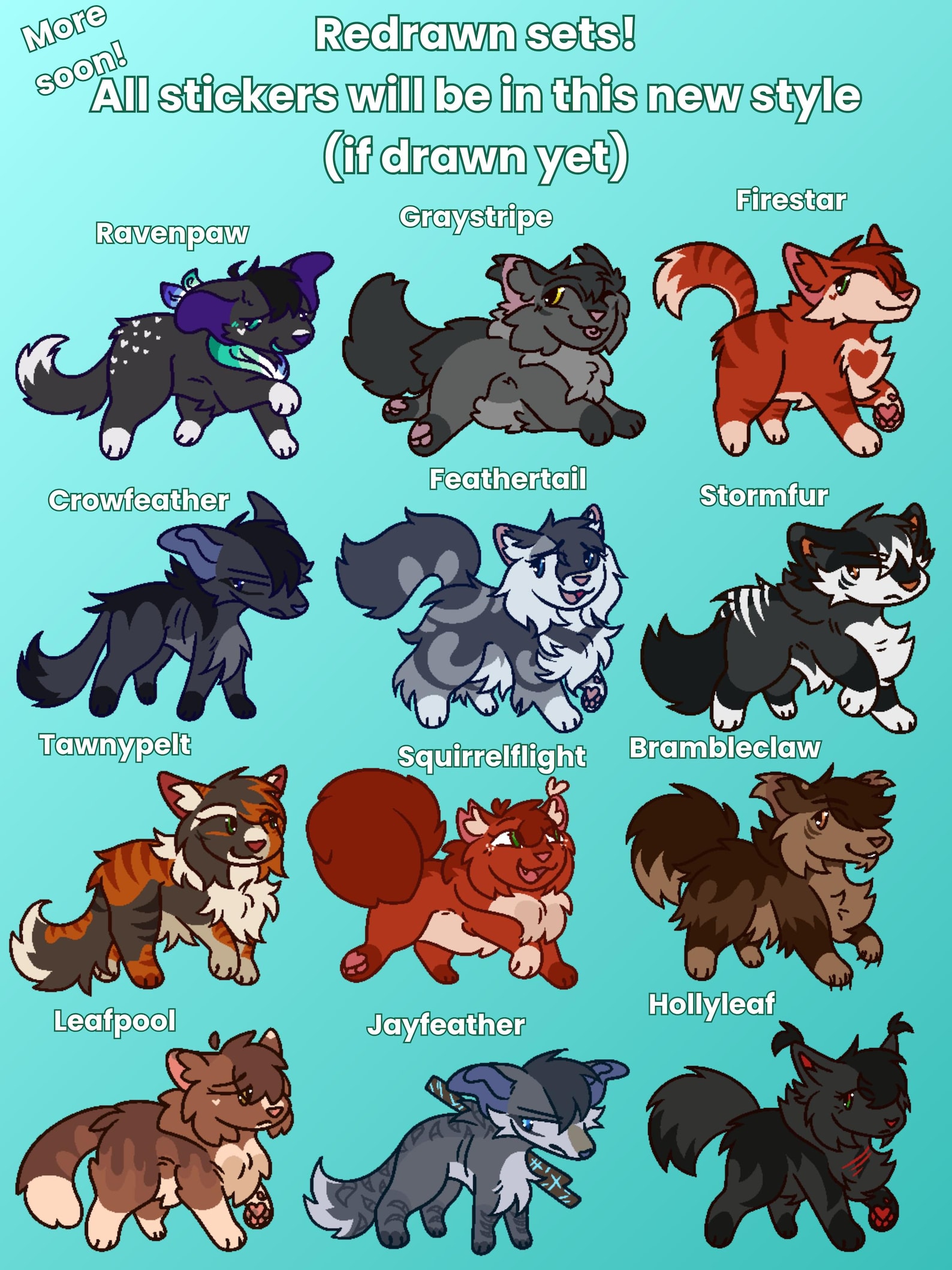 If you want Firestar, Graystripe, and Ravenpaw, they will all be in my new style! This goes for any updated cats I draw.