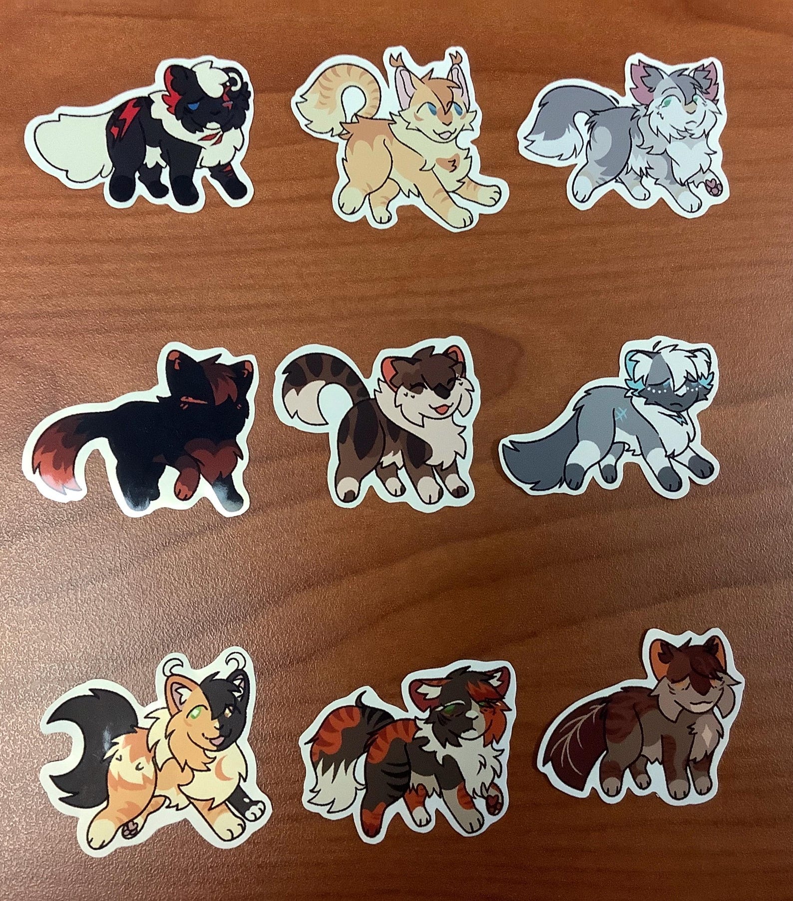 Tiny 1.5" chibi glossy stickers of all your favorite cats in the clans! Will be sent with a regular envelope without tracking. If you do not specify which cats you want, I will choose for you!