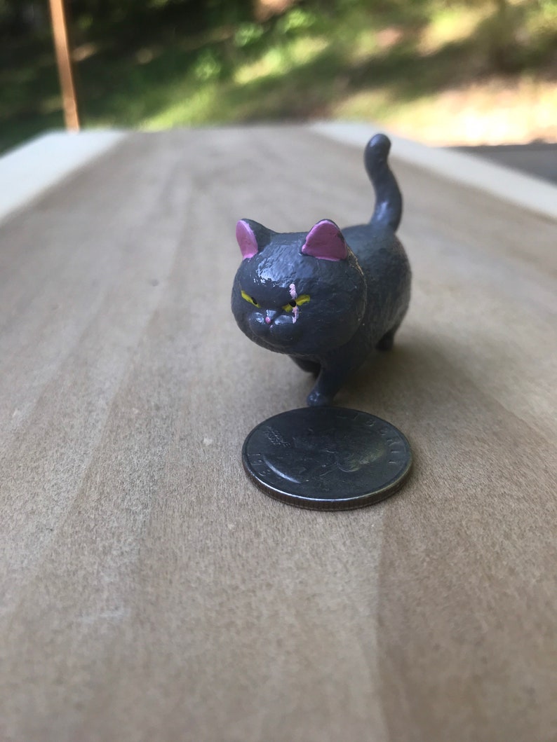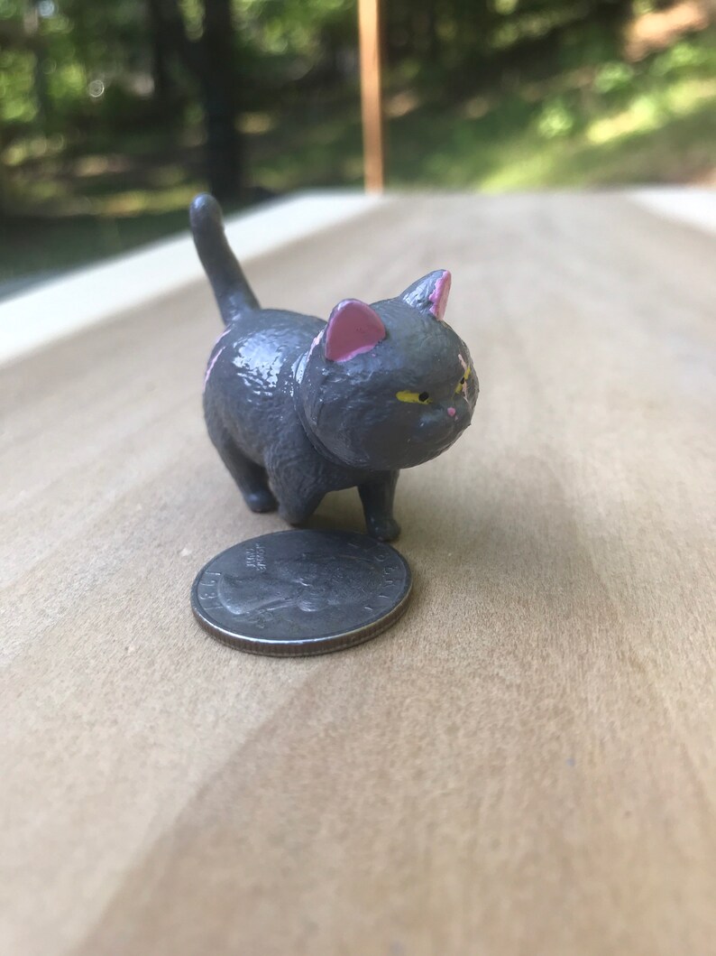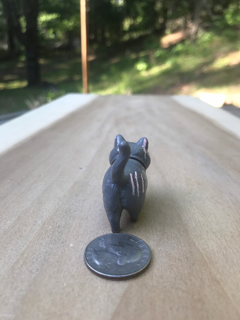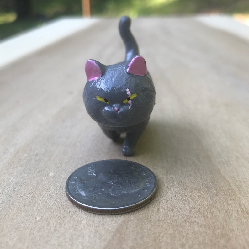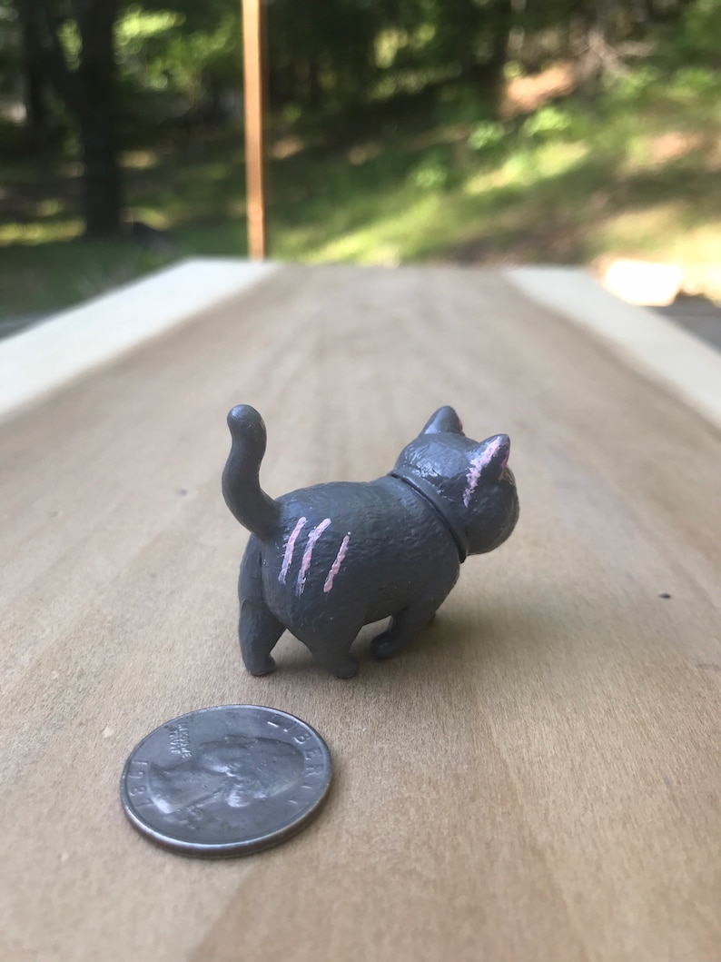 This is a plastic 2.25” inch cat figurine that has been custom painted. It is hand painted to the Warrior Cat theme using acryllic paints.