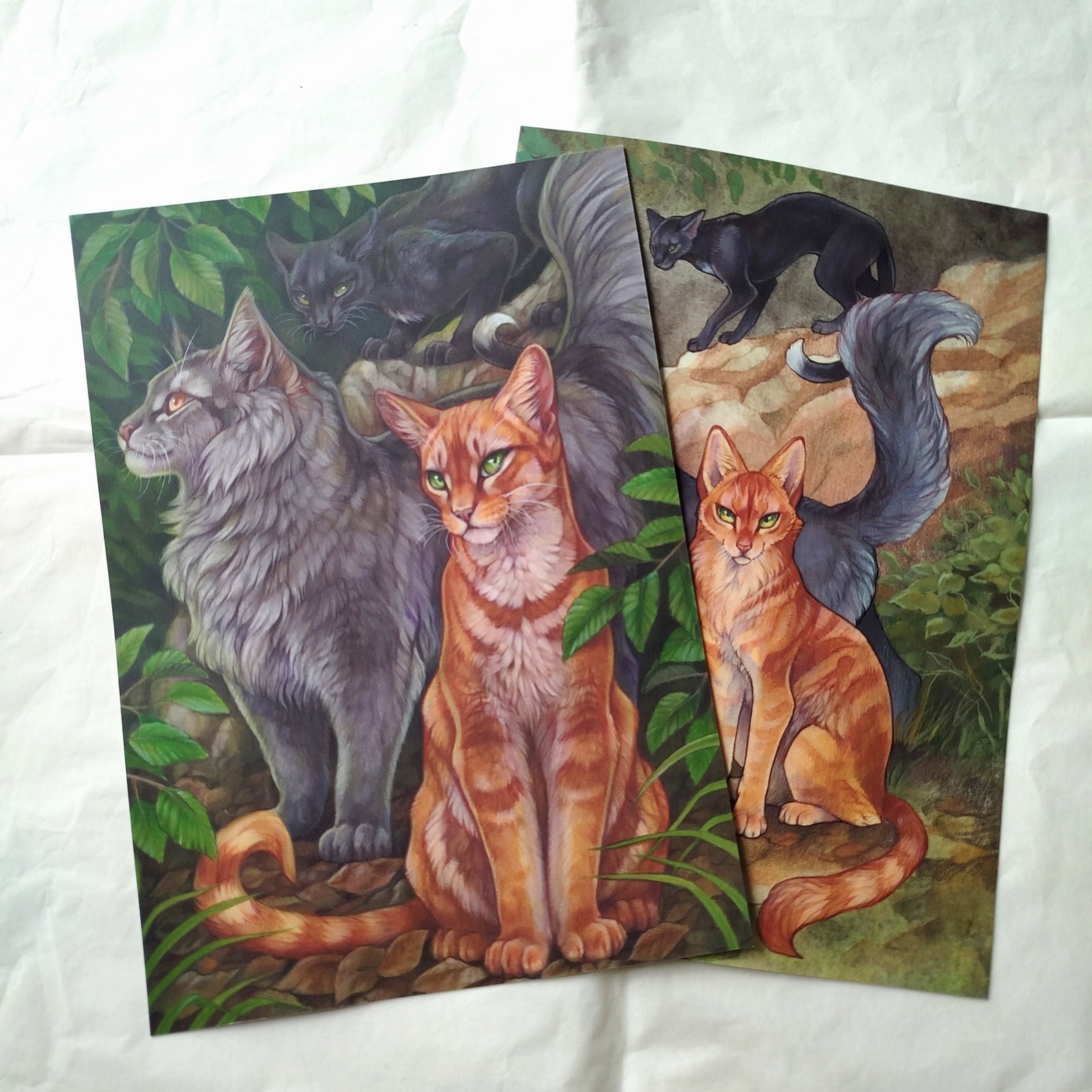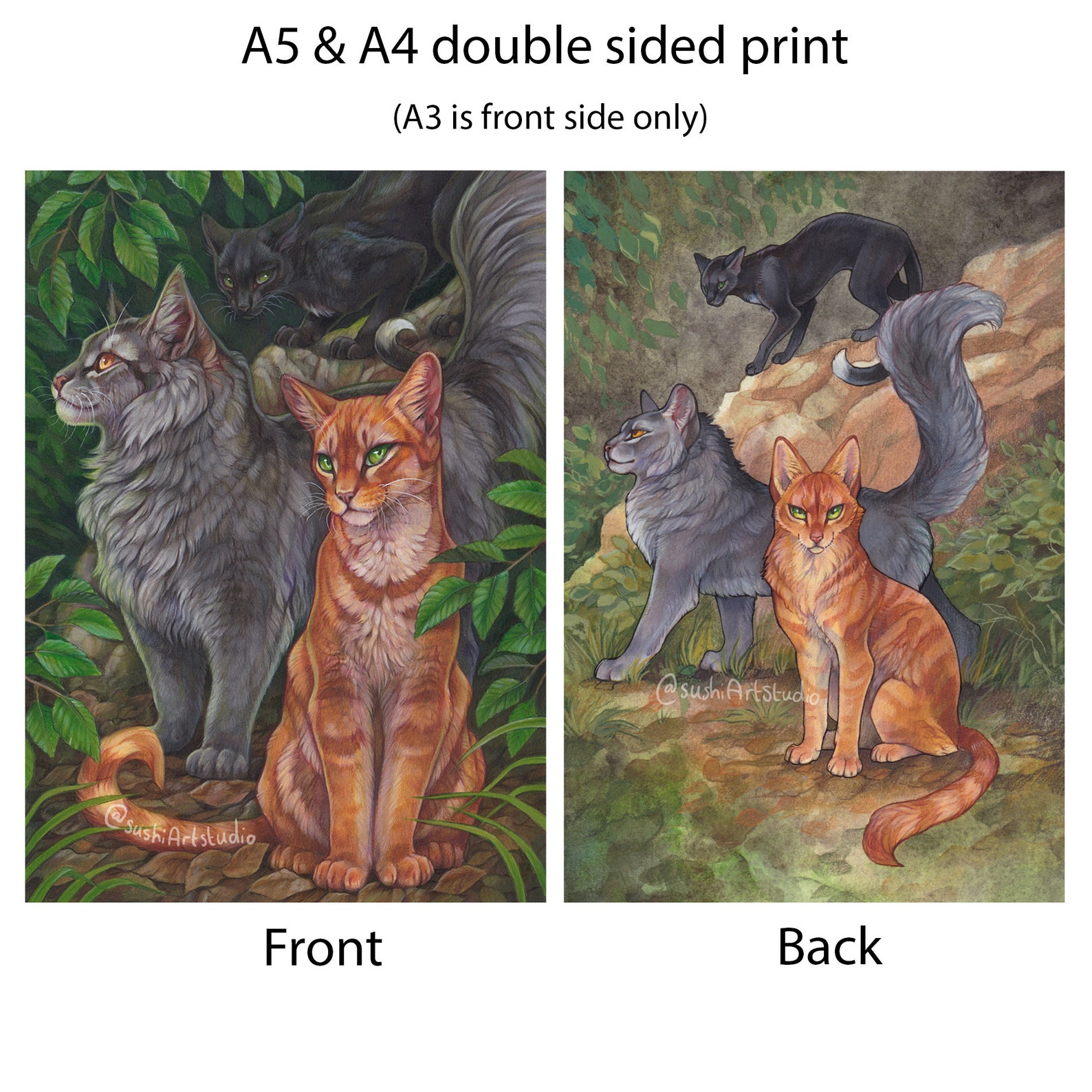 Special double sided print with 2 illustrations of the warrior cats series drawn 4 years apart. The original was drawn in December 2019 and the new version was drawn in April 2024.