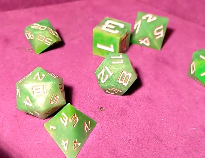The warriors dice that I make, I use color based on the cat's pelt color, eye color, and personality! I would love to make your next set of dice.