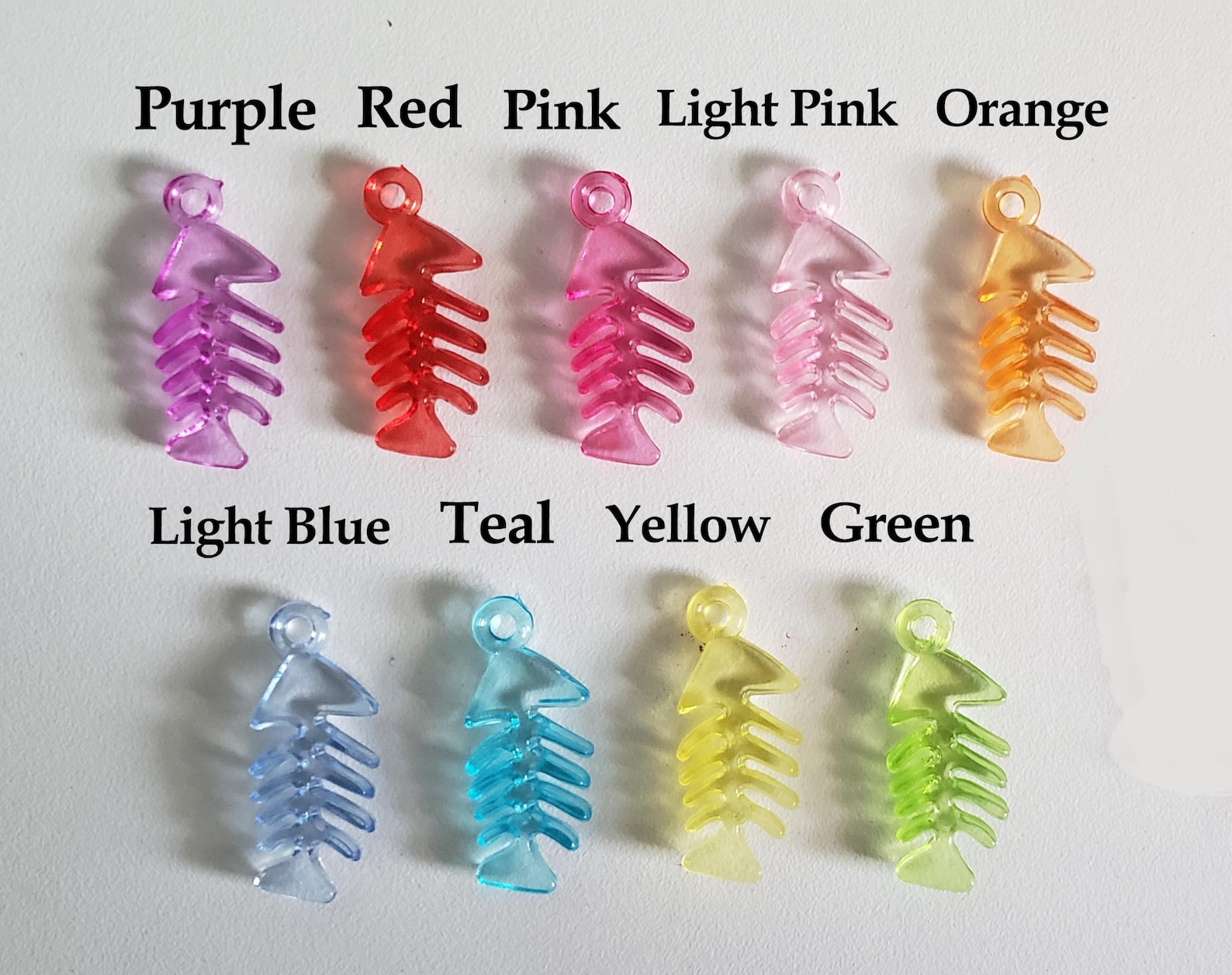 Comes with a fish bone charm in various colors. If you have any questions feel free to contact me.