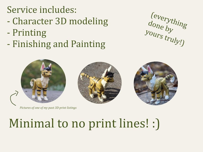 The more pictures you send me of your character, the better! I am turning a 2D character into 3D, so if your OC looks different on one side, please include that in the reference photos/description.